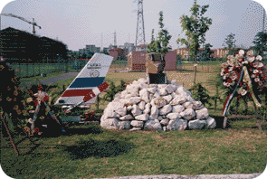 Un cumulo di pietre ordinate, a simboleggiare una vetta con sulla cima un pezzo aeronautico. Tutt’attorno una giovane siepe ricorda gli alberi di un bosco appenninico. Chiunque si rechi al nostro Circolo, conosce perfettamente quella storia quando volge lo sguardo su un lato dell’ ingresso della sede.